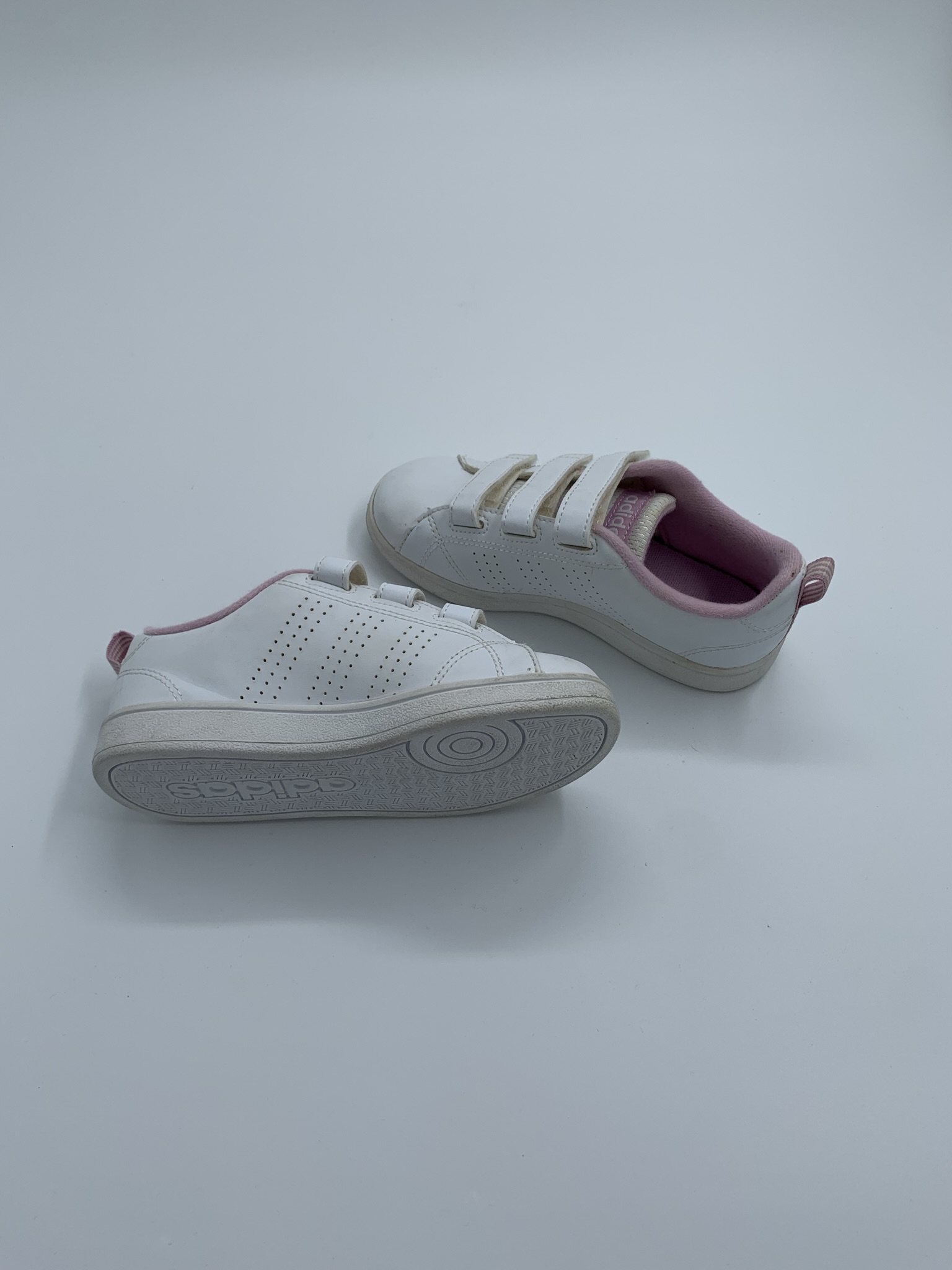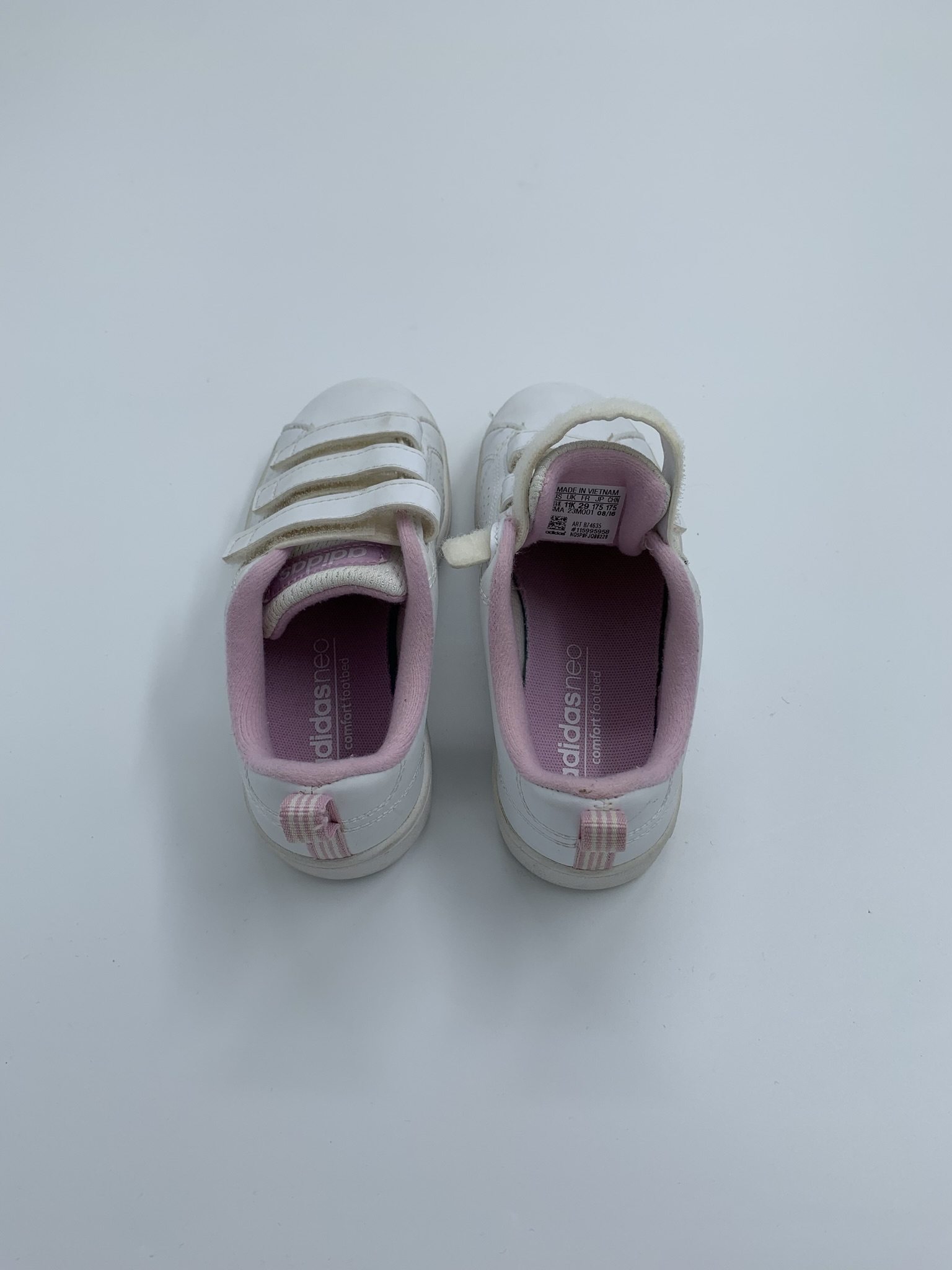 Adidas neo, άνετα sneakers με velcro, No 29, λευκά, με εσωτερική μωβ επένδυση. Έχουν φορεθεί από την Ειρηνούλα μου, χωρίς όμως να τα πατήσει και γι’ αυτό είναι σαν καινούρια....
