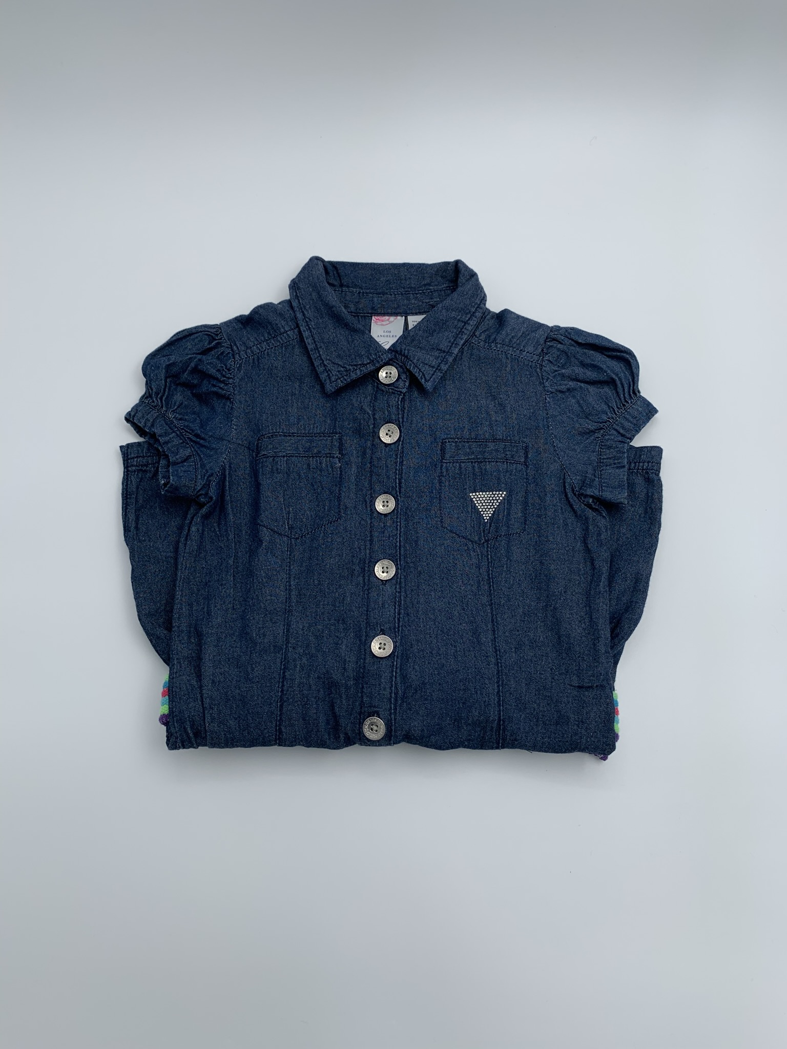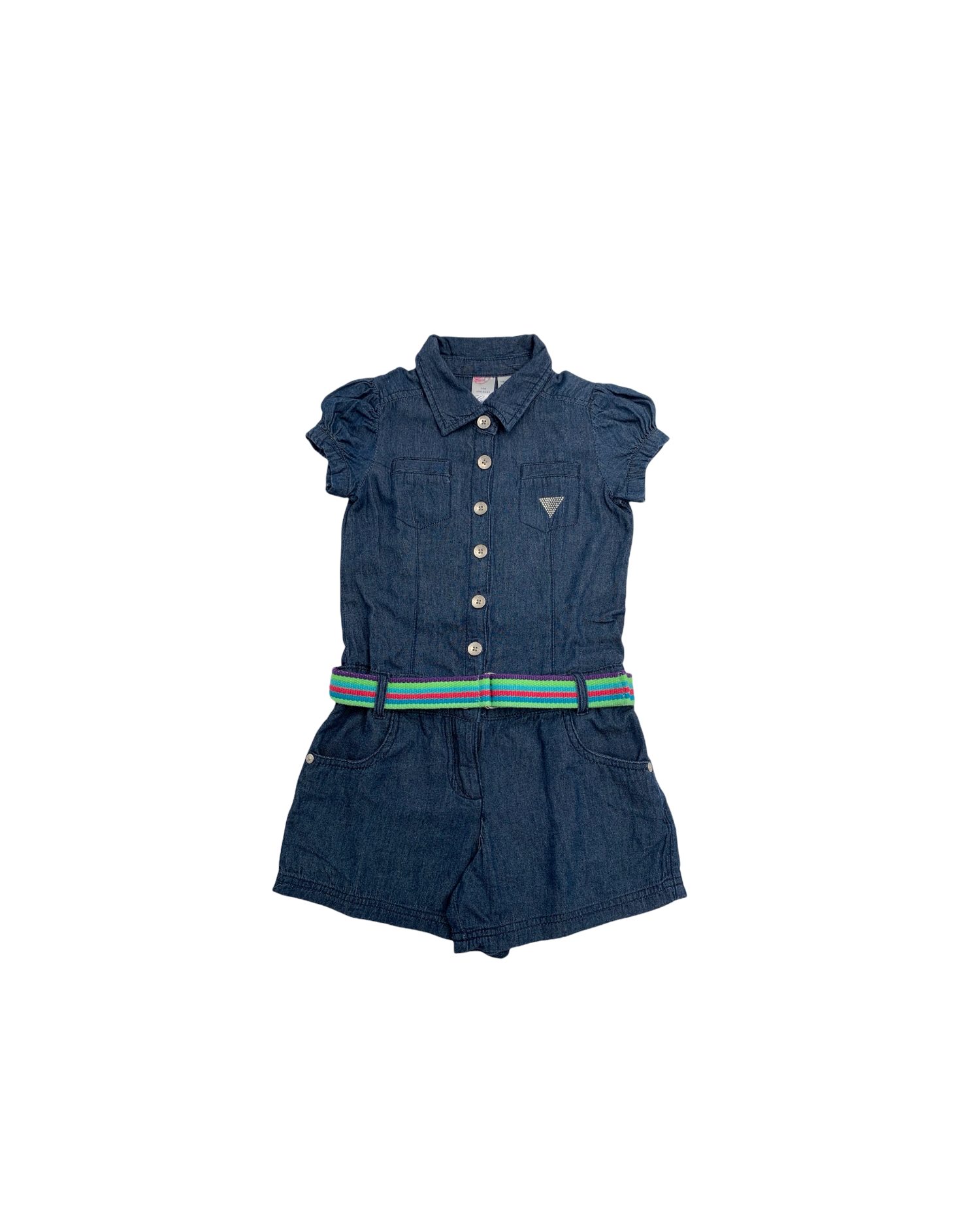 Guess τζιν σαλοπέτα κοντομάνικη με σορτς για κορίτσια 7 ετών. Έχει ζώνη στη μέση και είναι από μαλακό τζιν ύφασμα, 100% βαμβάκι. Ταίριαζε πολύ στην Ειρηνούλα μου. Είναι σε πολύ καλή κατάσταση....