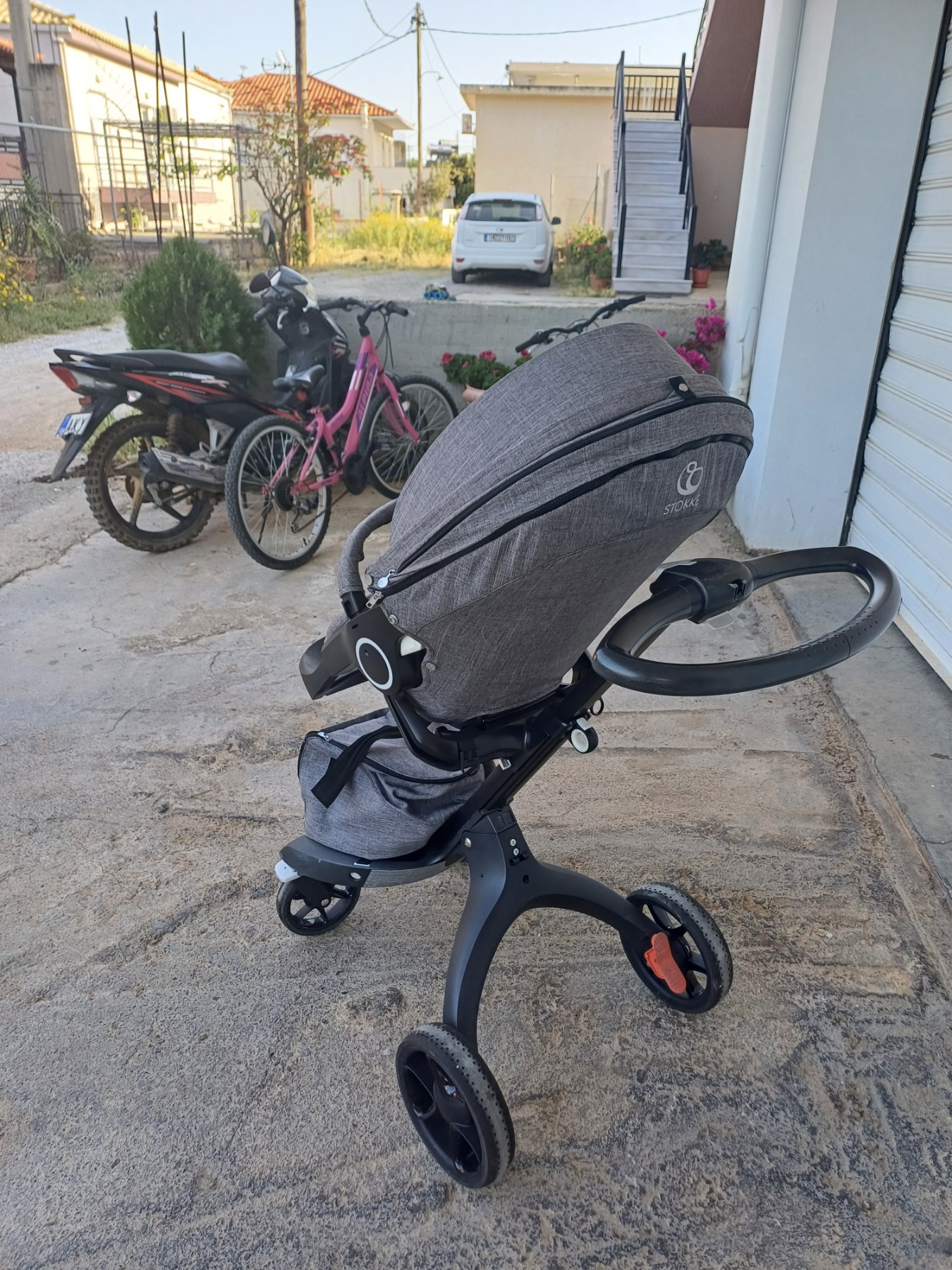 Καρότσι Stokke Xplory σε άριστη κατάσταση, περιλαμβάνεται ο σκελετός του καροτσιου, Πορτ μπεμπέ, κάθισμα αυτοκινήτου (αυγό)για τους πρώτους μήνες, κάθισμα καροτσιου, τσάντα που προσαρμόζεται στο καρότσι, ομπρέλα για το καρότσι για περισσότερη σκίαση από τον ηλιο, κουνουπιέρα